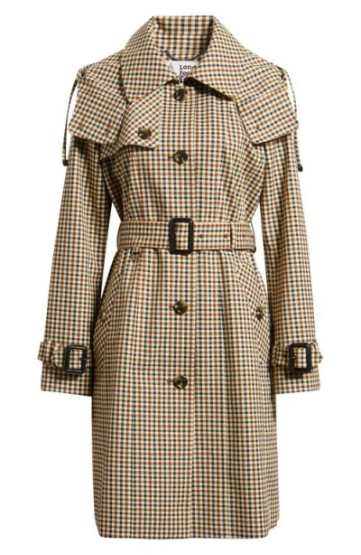 Double Breasted Trench With Button Off Hood In British Khaki In Neutral
