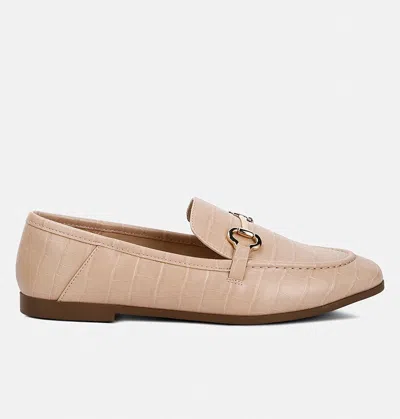 Bro Zone Croc Embossed Chain Detail Loafer In Beige