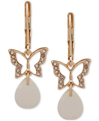 Gold-tone Shaky Bead & Flower Motif Stone Drop Earrings In Open