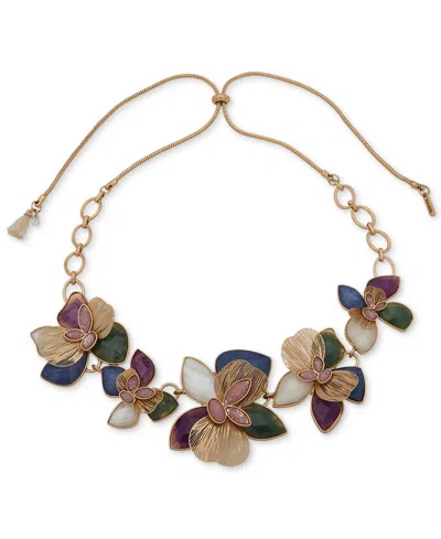 Gold-tone Flower 26" Slider Frontal Necklace In Multi
