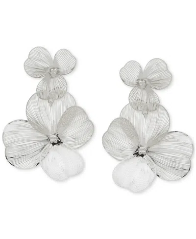 Lonn & Lilly Gold-tone & Imitation Mother-of-pearl Flower Linear Drop Earrings In White
