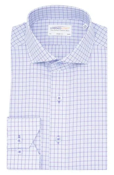 Trim Fit Tattersall Check Cotton Twill Dress Shirt In White