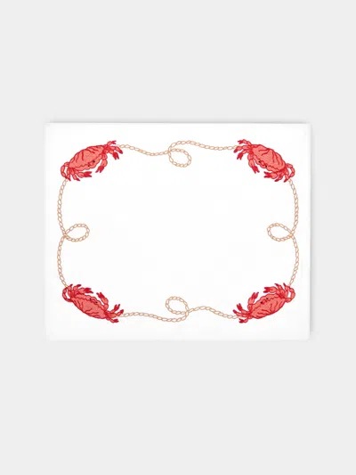 Crabs With Rope Hand-embroidered Linen Placemats (set Of 2) In White