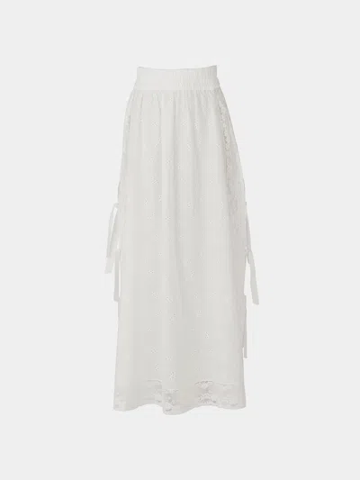 Fiocchini Embroidered Cotton Long Skirt Size: M In White