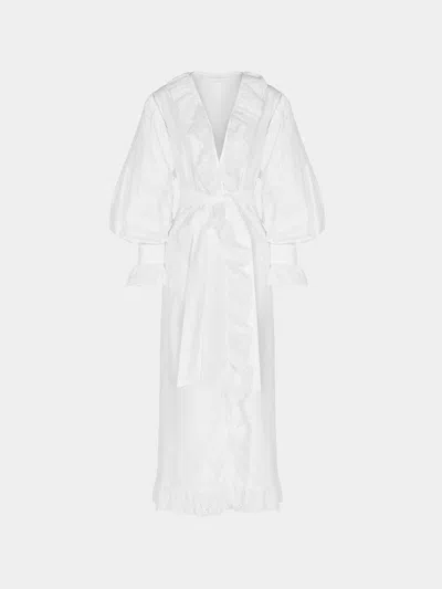 Uva Embroidered Cotton Long Dress Size: Xs In White