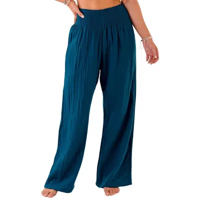 Pacifica Wide Leg Cotton Pants In Deep Teal In Blue
