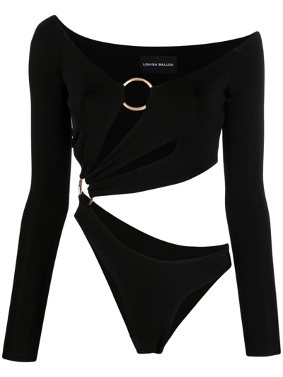 Long Sleeve Cut-out Bodysuit In Black