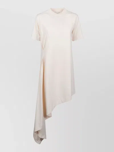 Igari Dress Asymmetric Hem Pleated Short Sleeves In White