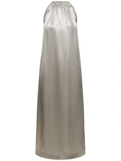Morene Silk Blend Halter Neck Long Dress In Grey