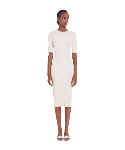 Elea Ribbed Silk-blend Midi Dress In Ivory