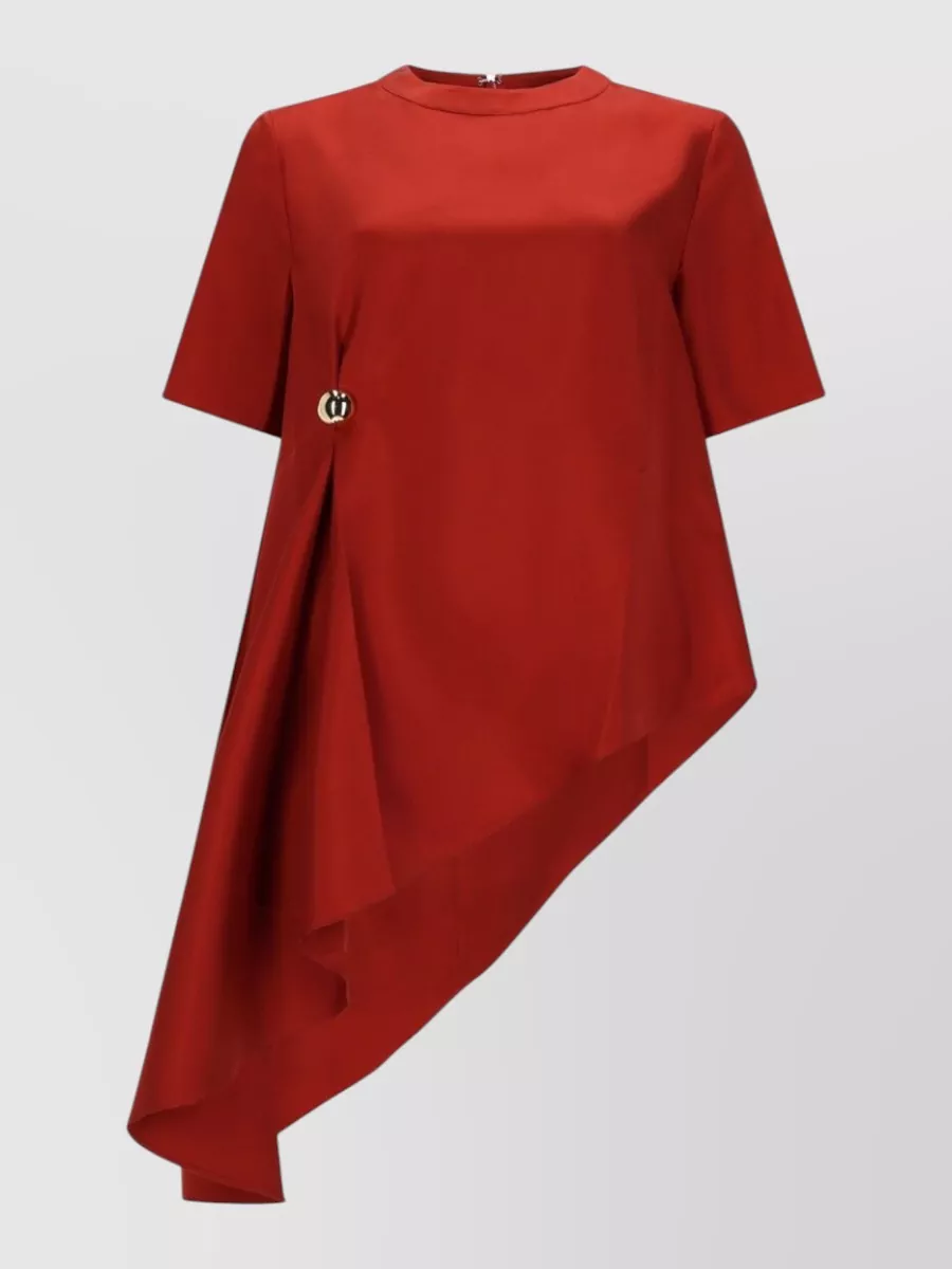 Dress Asymmetric Hem Decorative Button Design In Red