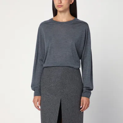 Ribbed Cashmere Sweater With Crew-neck In Blue Melange