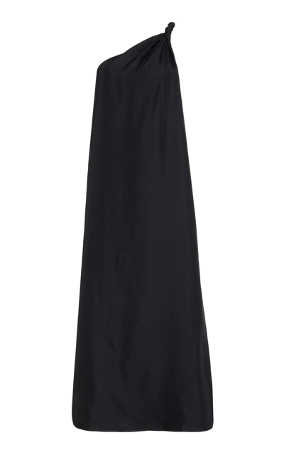 One-shoulder Twisted Silk Midi Dress In Black