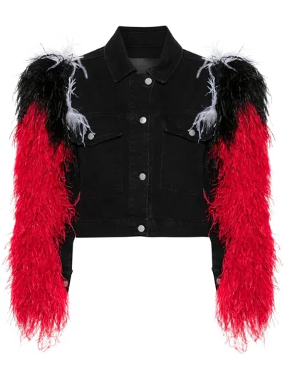 Feather-detail Denim Jacket In Black