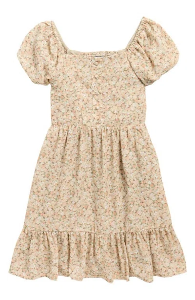 Kids' Ditsy Floral Print Ruffle Dress In Gold