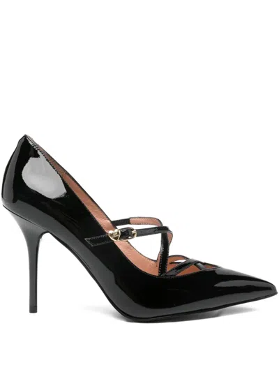 Glossy Black Pumps With Delicate Crisscross Straps