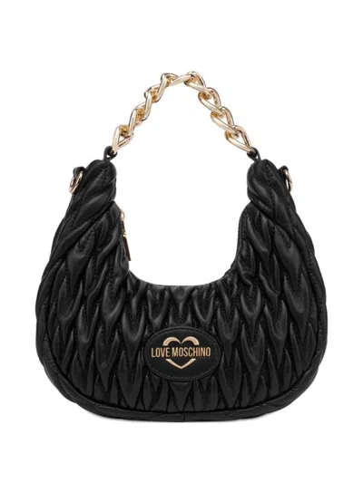 Quilted Heart-detail Shoulder Bag In Black