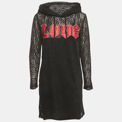 Pre-owned Love Mocshino Black Love Applique Mesh Hooded Dress M