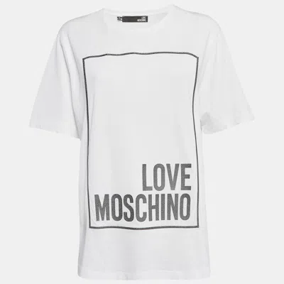 Pre-owned White Lovers Glitter Print Cotton Oversized T-shirt S