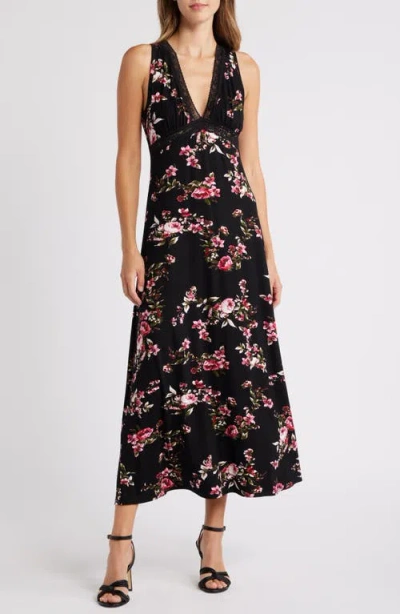 Lace Inset Sleeveless Dress In Black Rose