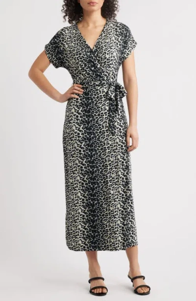Leopard Print Faux Wrap Midi Dress In Brown