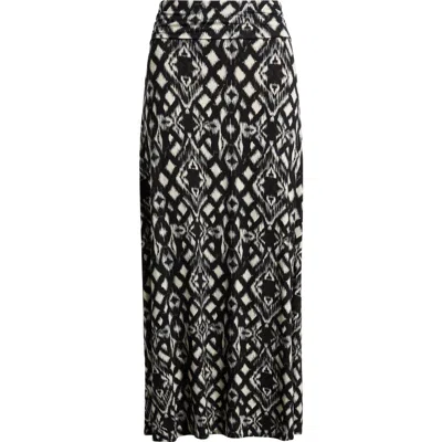Roll Top Ikat Maxi Skirt In Black/grey