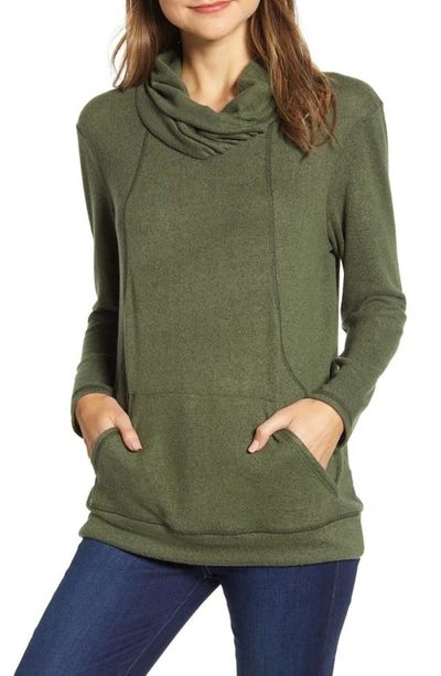 Loveapella Brushed Leopard Print Long Sleeve Crewneck Top In Camel/black