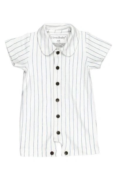 Pinstripe Organic Cotton Romper In Pool Pinstripe
