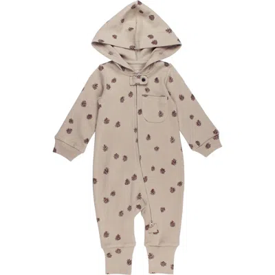 Print Organic Cotton Hooded Romper In Neutral
