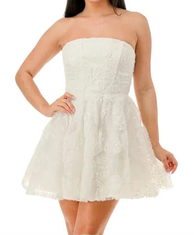 Floral Applique Glitter Mini Dress In White