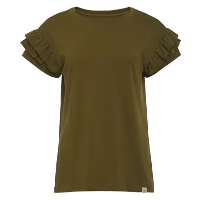 Women's Green Ella Ruffle Sleeve Tee - Olive