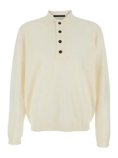 White Sweater With Polo Shirt Style Collar And Long Sleeves In Wool Man In Neutral