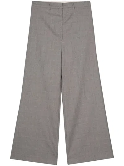 Wide Leg Wool Trouser With Belt Loops In Gray