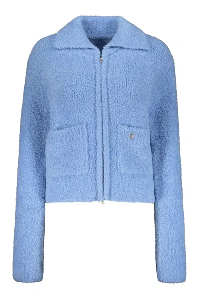 Draped Collarless Blazer In Blue