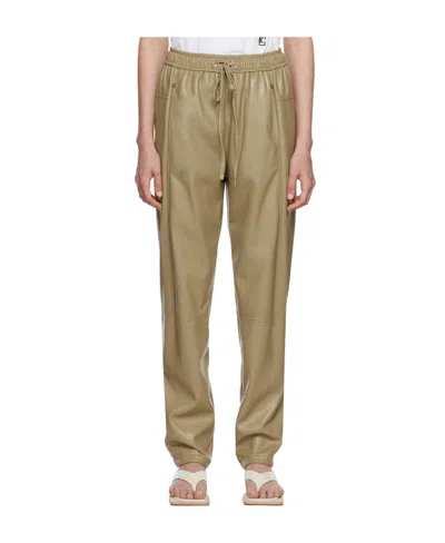 Faux Leather Drawstring-fastening Trousers In Brown