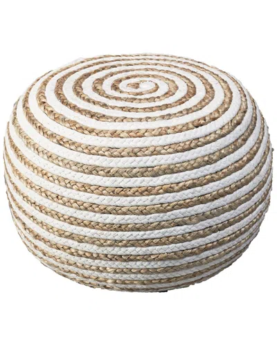 Cecelia White/natural Striped Braided Ottoman Pouf