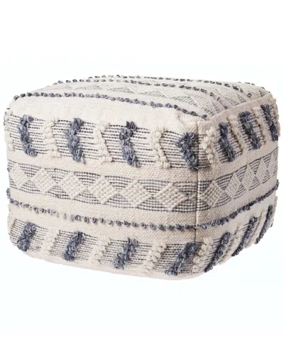 Amelia Cream/grey Geometric Wool Blend Ottoman Pouf In White