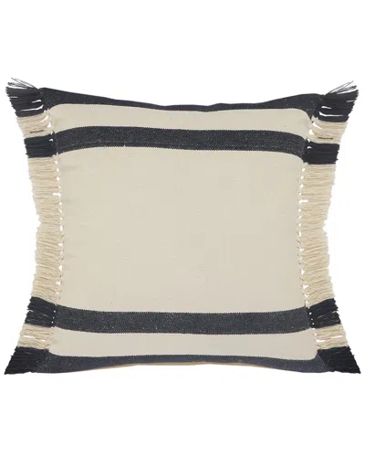 Hailey Striped Throw Pillow With Fringe In Blue