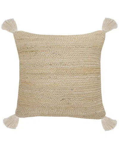 Reese Natural Throw Pillow With Tassels In Beige