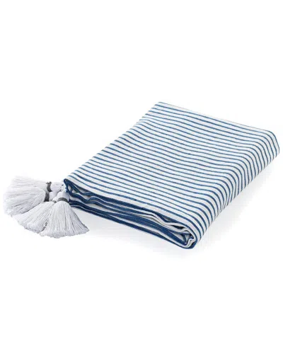 Corydalis Blue Cabana Striped Throw Blanket With Tassels