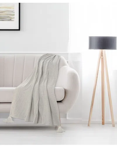 Light Gray Cabana Striped Throw Blanket With Tassels