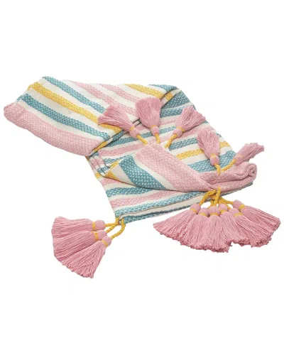 Pink, Blue, And Sunny Striped Throw Blanket With Tassels In Multi