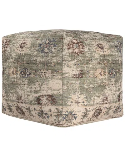 Esra Vintage Distressed Floral Filigree Ottoman Pouf In Green