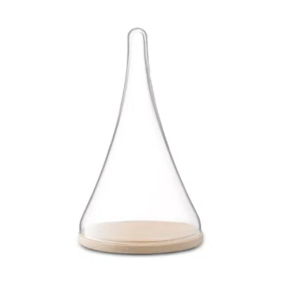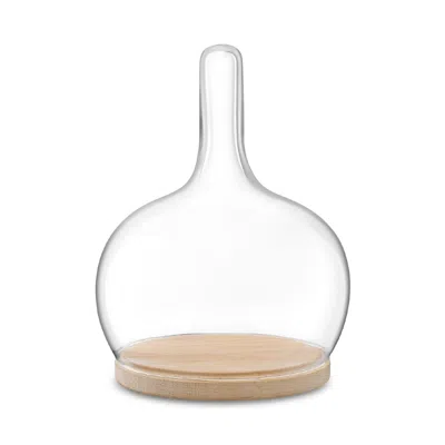Glass Cloche Dome With Oak Base, 14 In Clear