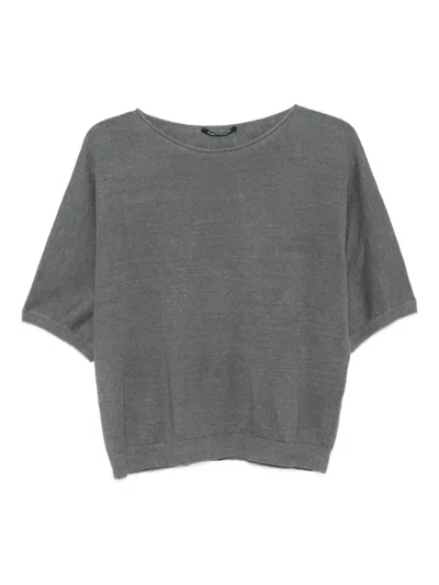 Short-sleeves Linen Top In Gray