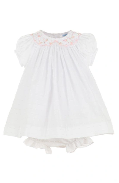 Babies' Swiss Dot Cotton Bishop Dress & Bonnet Set In White