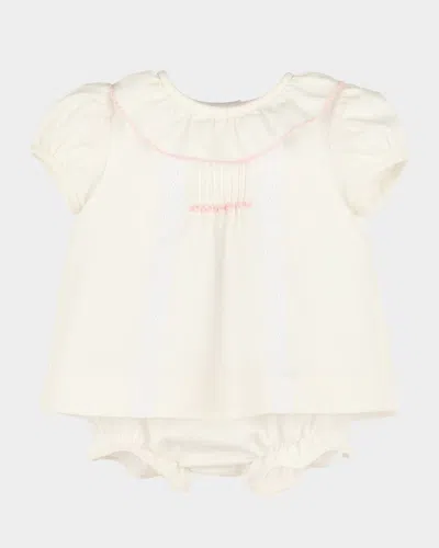 Kids' Girl's Pintuck Lace Cotton Dress & Bloomers In Neutral