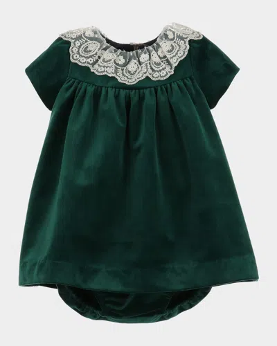 Kids' Girl's Pleated Velvet Lace-collar Dress In Green