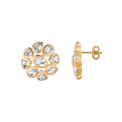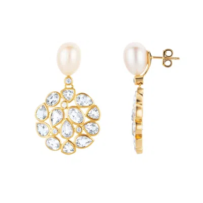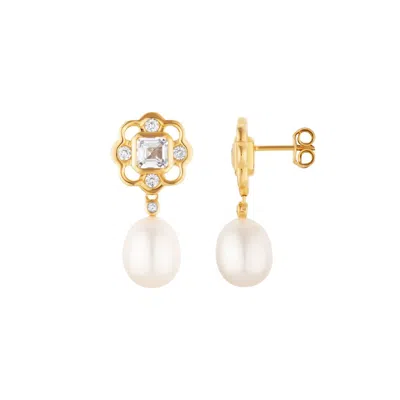 Women's White Topaz & Pearl Statement Gold Stud Drop Earrings