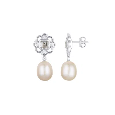Women's White Topaz & Pearl Gemstone Flower Silver Stud Drop Earrings